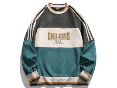 美式潮牌麂皮绒长袖卫衣男春季情侣运动套头衫国潮百搭休闲上衣男