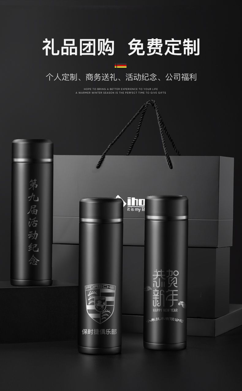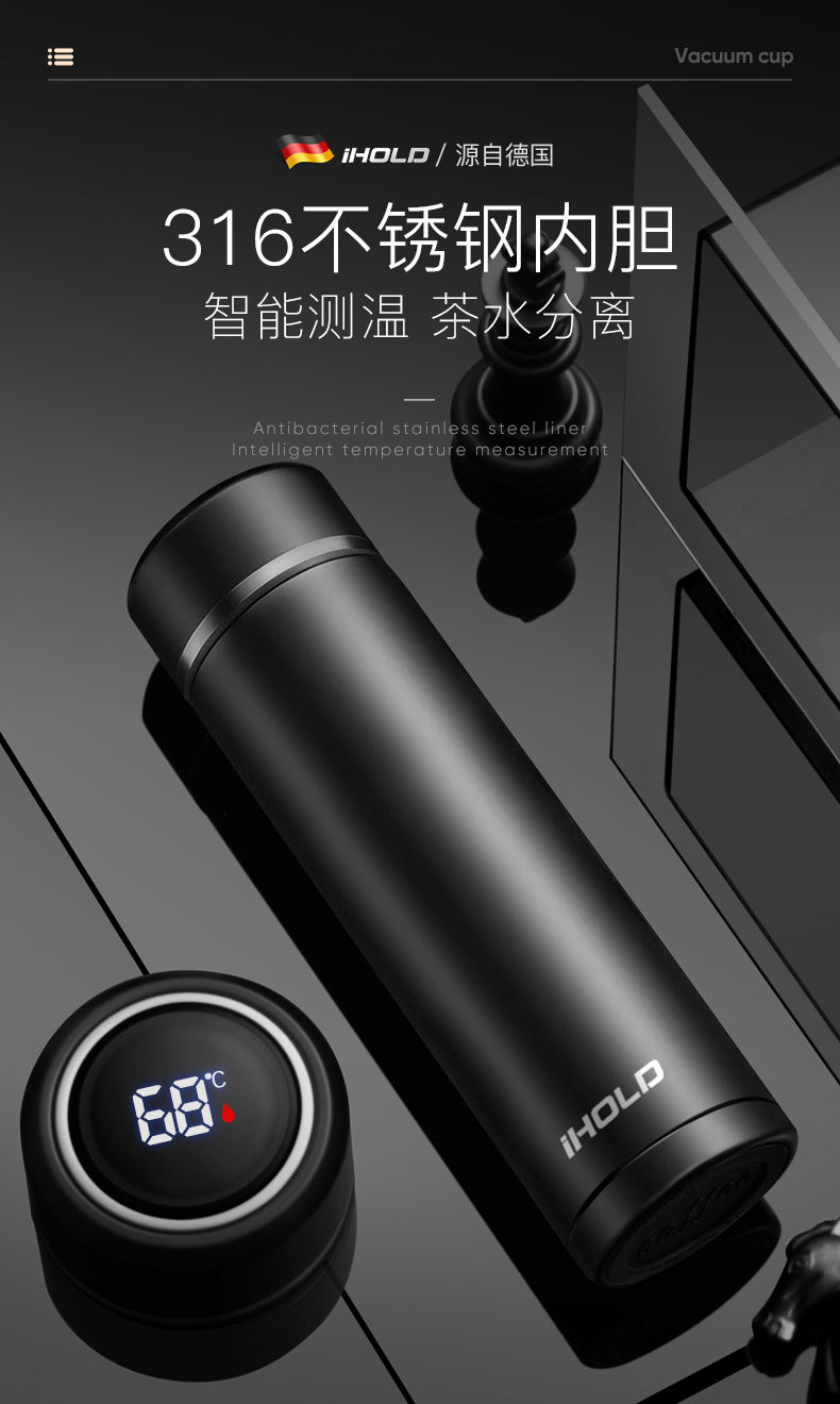 高档智能测温316不锈钢真空保温杯男女商务便携大容量刻字泡茶杯