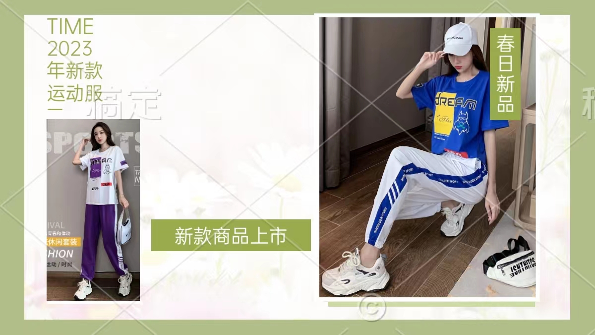 运动服套装女夏季新款时尚潮牌洋气短袖T恤女休闲九分裤中学生两件装 白衣蓝裤