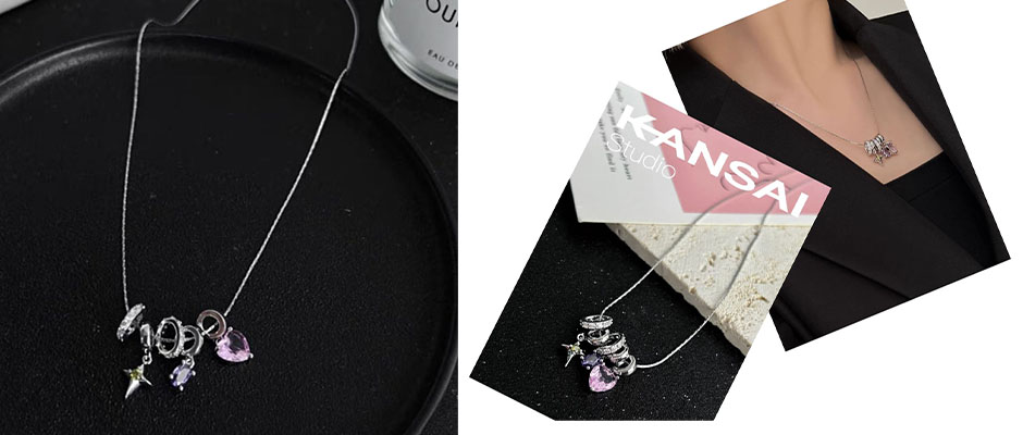 KANSAI爱心锆石星芒镶钻吊坠项链女轻奢小众简约甜酷个性锁骨链潮