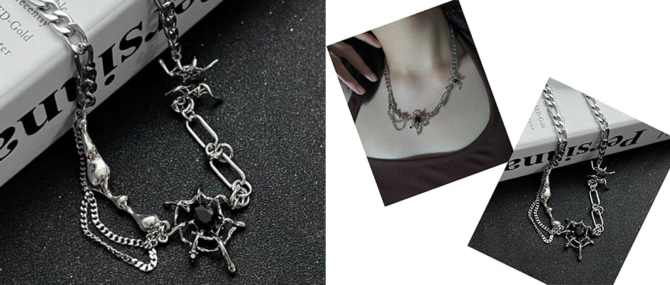 KANSAI黑宝石蛛网拼接项链潮ins冷淡风酷潮锁骨链嘻哈配饰品