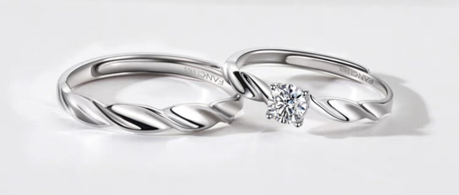 FANCI/范琦 925银合成锆石戒指 闪耀银河对戒 可调节情侣戒指设计