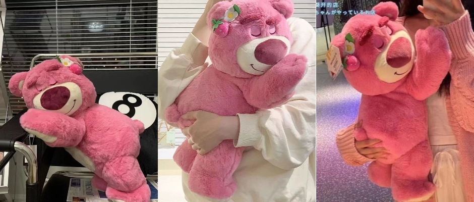 趴款草莓熊抱枕毛绒玩具公仔睡觉抱枕小熊布娃娃玩偶 草莓熊