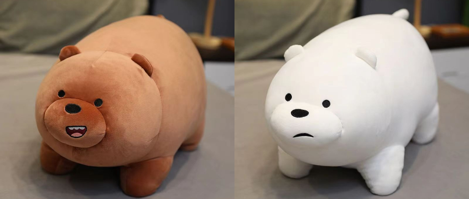 咱们裸熊公仔三只裸熊毛绒玩具可爱大白熊熊猫趴趴熊抱枕 白色 中