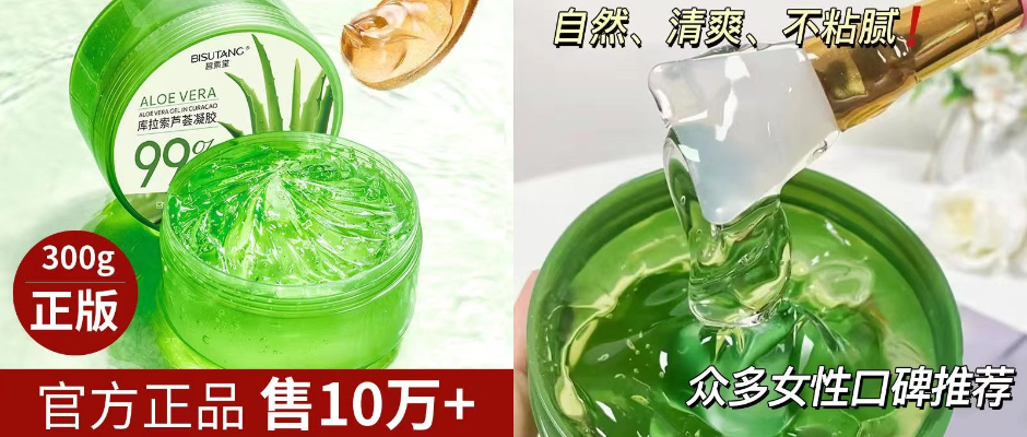 碧素堂99%鲜芦荟胶提亮补水保湿抗痘印晒后修护面霜大瓶300g正品
