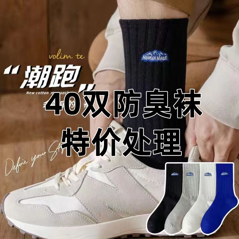 【半价40双】袜子男款秋冬中筒袜黑白长袜防臭吸汗透气运动潮袜女