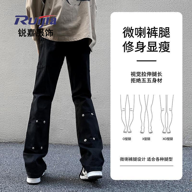 欧美高街vibe裤子痞帅高级感黑色牛仔裤男修身微喇叭直筒工装长裤