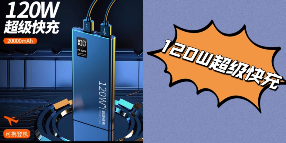 官方旗舰正品120W超级快充充电宝20000毫安超大容量超薄小巧便携移动电源适用苹果华为vivooppo手机专用PD20W