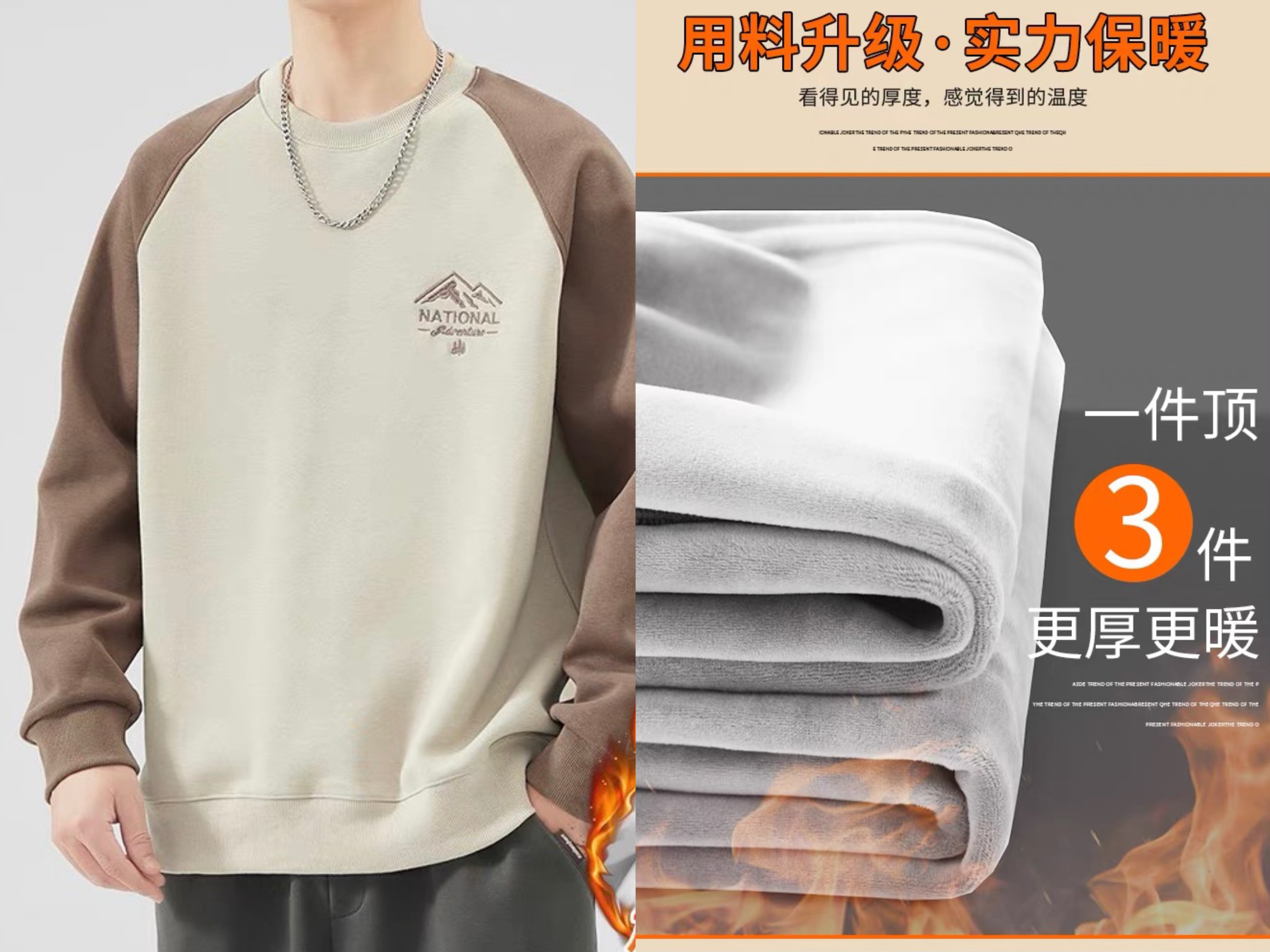 撞色圆领卫衣男士加绒加厚秋冬款长袖打底衫冬季2023新款男装上衣柔顺保暖加厚卫衣