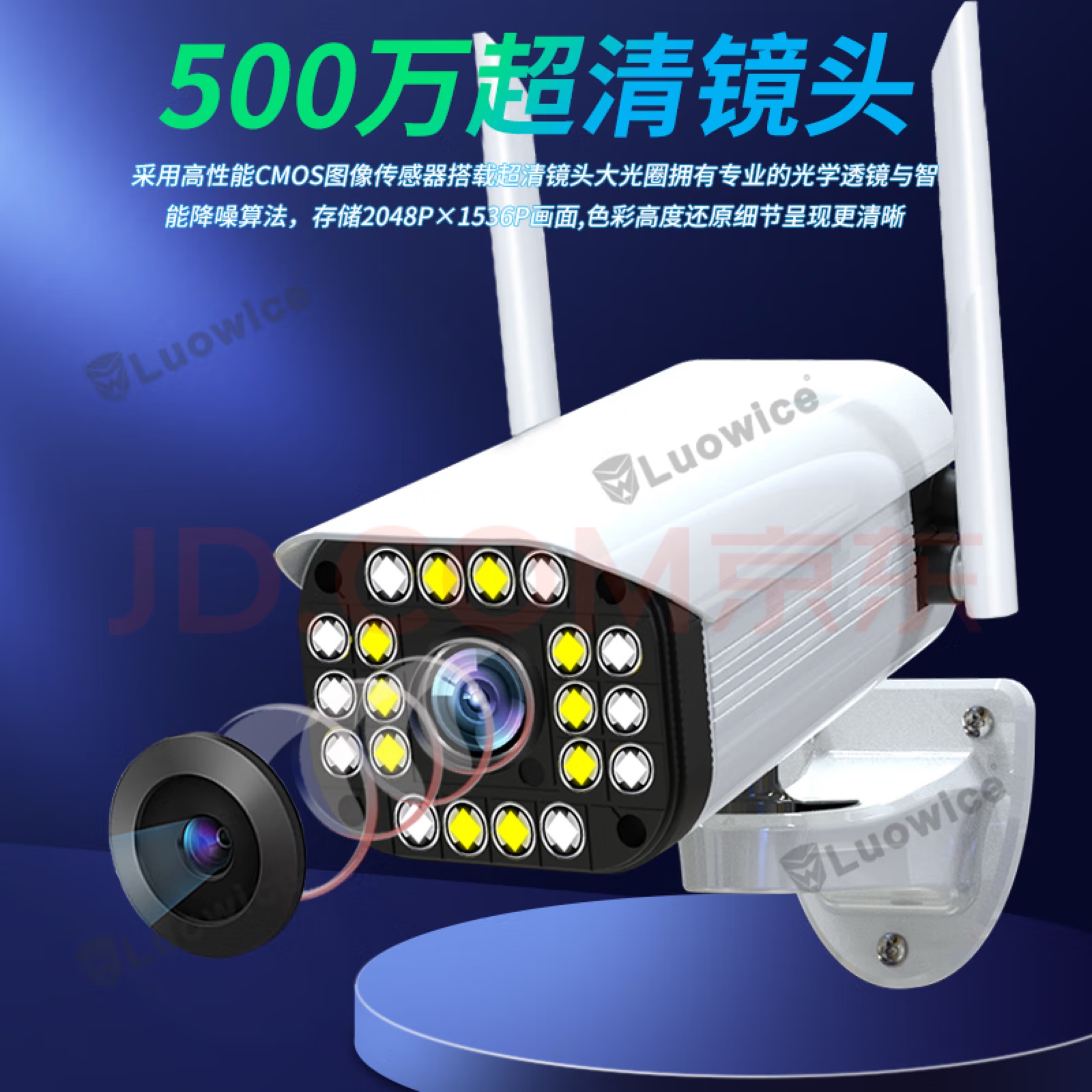 镭威视摄像头监控套装360度全景云台旋转无线wifi高清夜视室外防水4G户外手机远程农村监