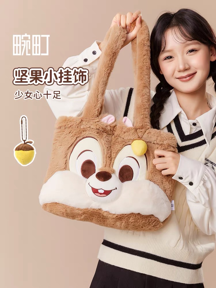 奇奇蒂蒂可爱毛绒绒乖巧单肩包女生冬季学生手提包