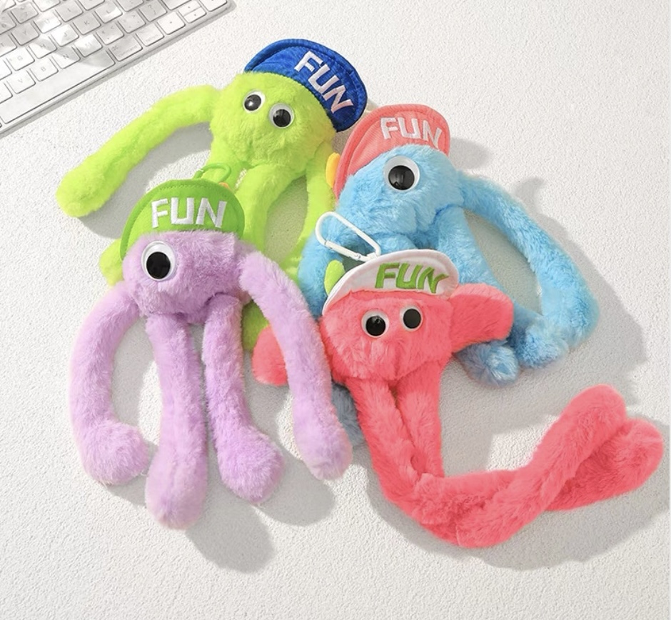 潮玩小怪抽拉挂件可爱毛绒钥匙扣女生小玩具趣味创意多色