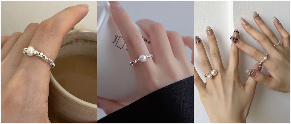 s925纯银戒指女小众设计珍珠高级感法式气质轻奢指环2023年新款潮 白色