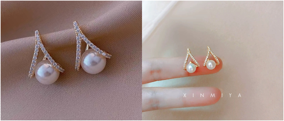 新款925纯银珍珠耳环女淡水珍珠时尚耳钉2021年网红爆款耳坠耳饰 白色