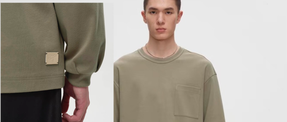 COMMON SCENTS重磅320g/m 2 舒棉宽松纯⾊基础⼝袋⻓袖T恤卫⾐ 卡其色 L