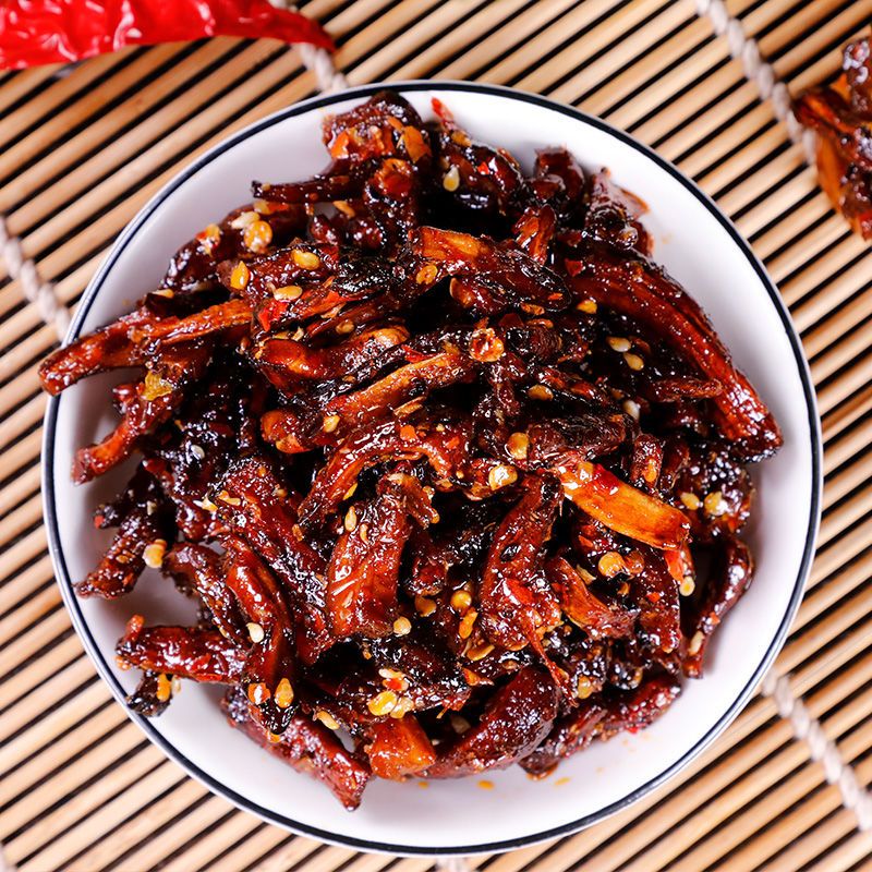 云南特产麻辣鸡枞腿休闲零食开袋油炸香菇脚即食菌干巴