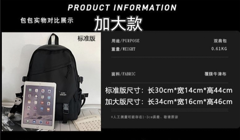 书包容纳量大,出门携带方便,口袋设计新颖,价格实惠