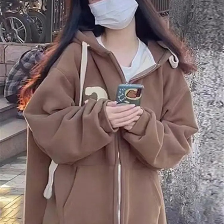 春秋薄款宽松小个子慵懒oversize外套美式高街hiphop连帽卫衣女