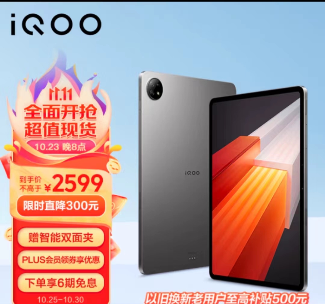 iQOO Pad 平板电脑 8GB+256GB 星际灰 12.1英寸超大屏幕 144Hz超感原色屏 天玑9000+旗舰芯 10000mAh电池