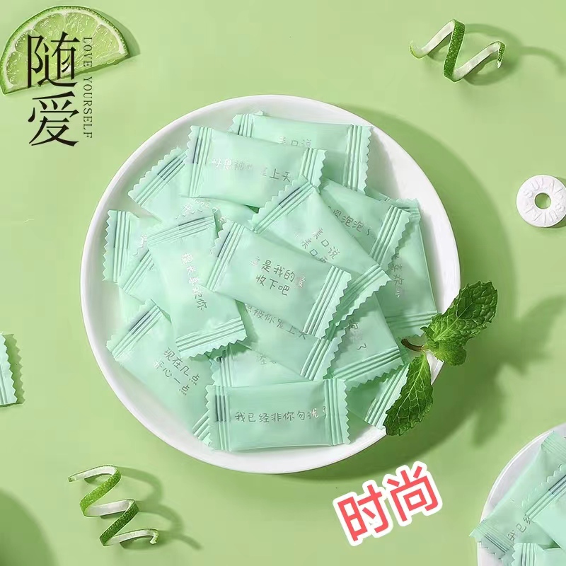 随爱情话薄荷糖果强劲清凉无糖商用批发学生励志语录清新口气圈圈