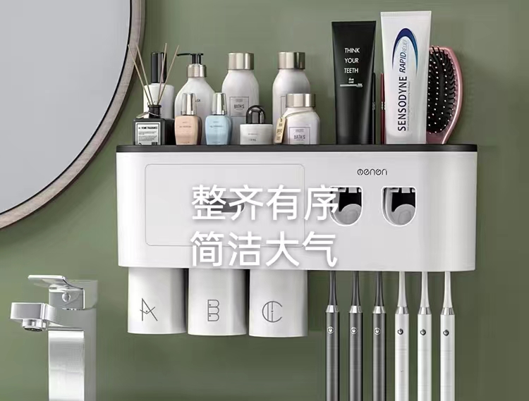 #自带一体式自动挤牙膏器#磁力悬挂吸附杯#双口自动挤牙膏器#自带牙膏器防尘盖