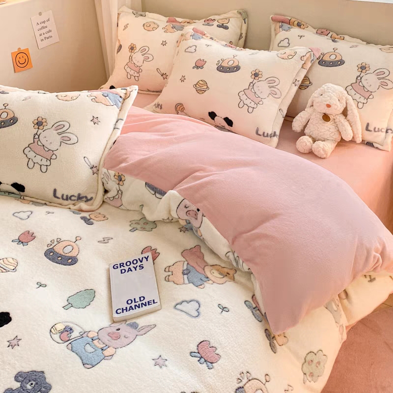 迪士尼加厚牛奶绒床上四件套冬季双面卡通儿童被套床单人加绒床品