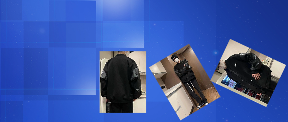 棒球服美式街头字母黑色呢子PU皮袖子单排扣拼接情侣长袖夹克外套