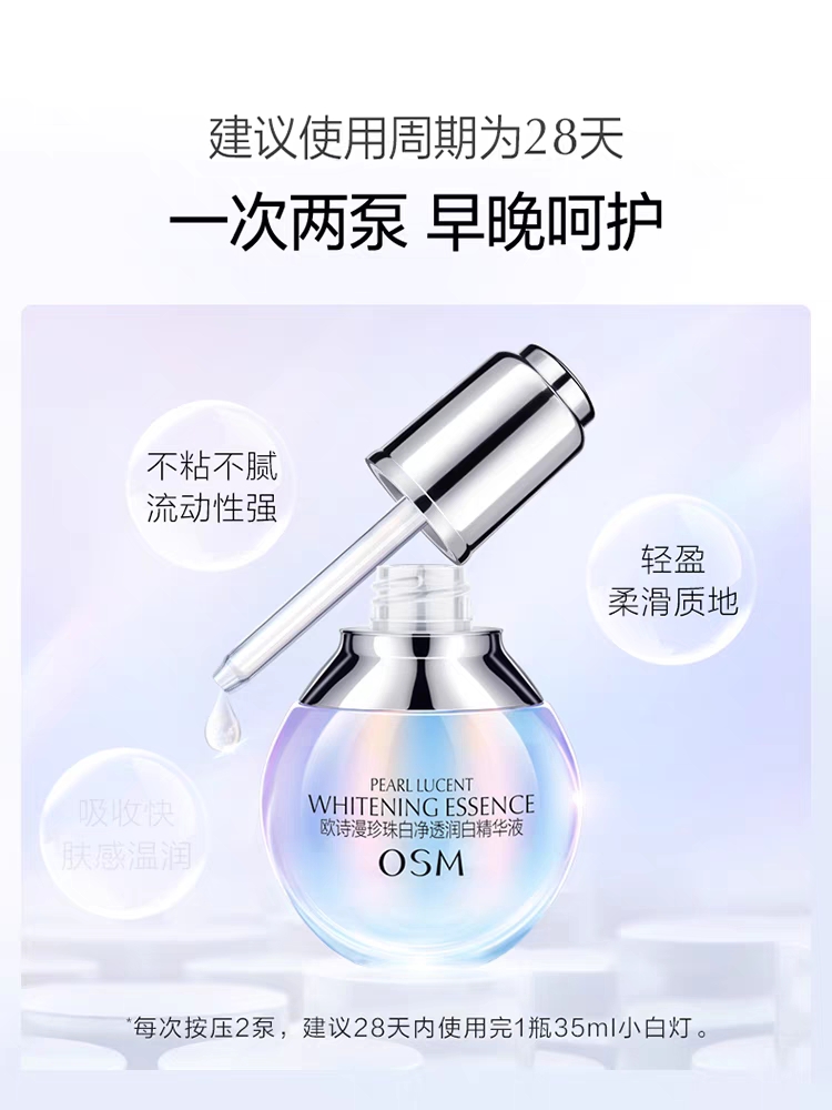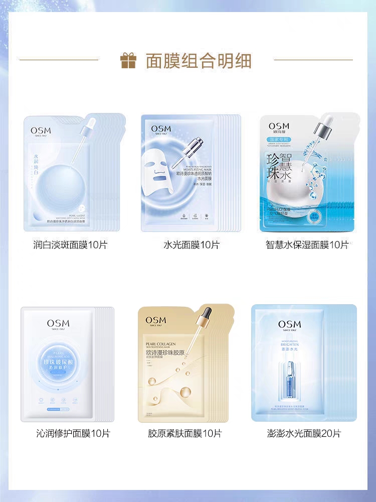 收到面膜后,迫不及待的使用了一贴,这个面膜分为精华膏和面膜两部分的,需要配合使用。用了之后感觉美白效果很好,脸部颜色提亮了很多,坚持使用应该效果会更明显。欧诗漫面膜收到,立马敷了一下,很补水,肌肤很透亮,之前买过这牌子套装洗面奶、水乳 都很好用的,温和腻!值得购买!