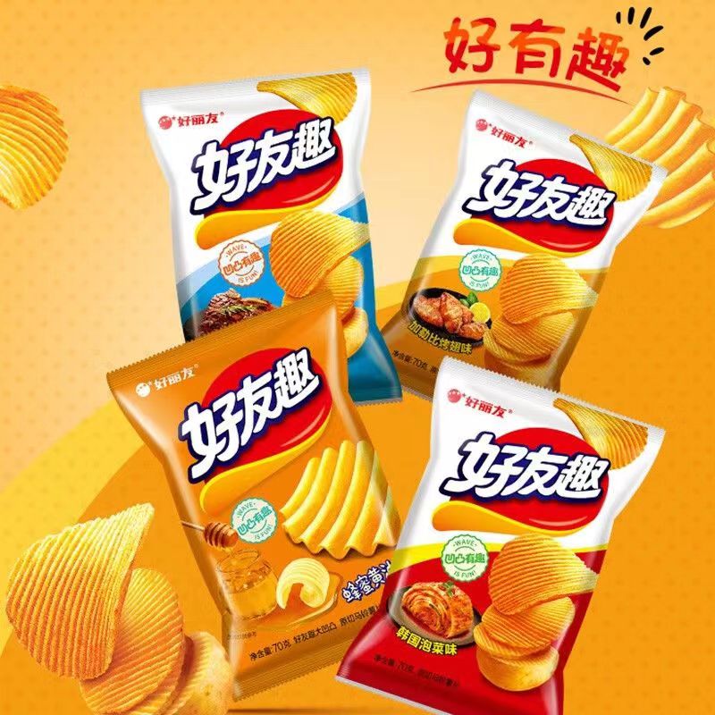 好丽友好友趣薯片45g/70g凹凸韩式泡菜辣白菜休闲膨化零食