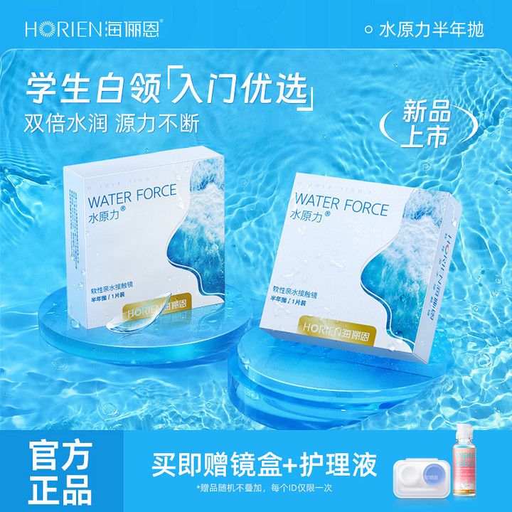 2023年海俪恩隐形眼镜水原力半年抛2片轻薄水润透明片清晰透氧舒适学生