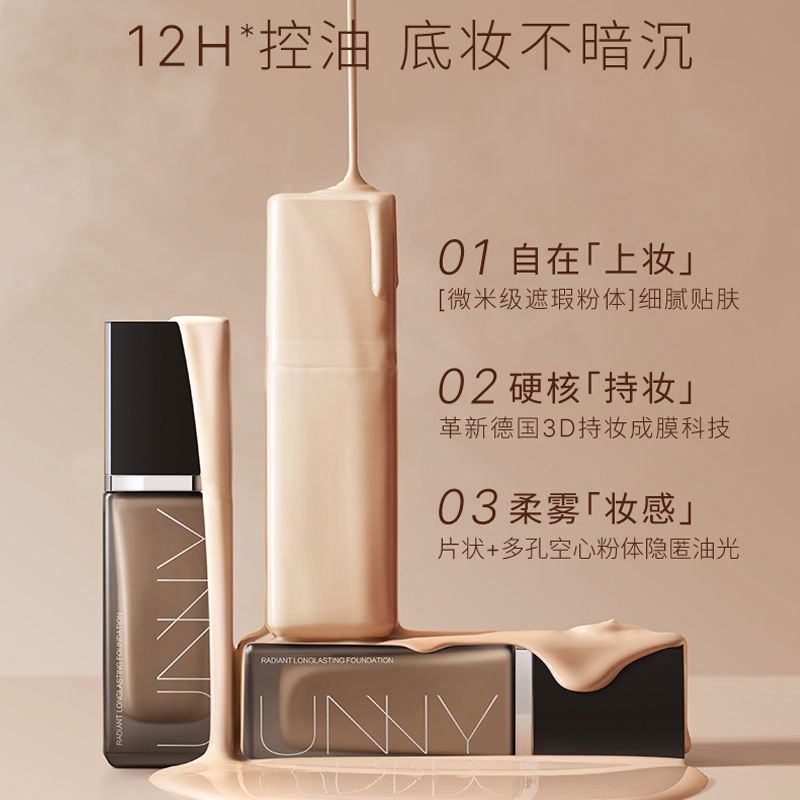 2023年unny粉底液防水防汗持妆打底持久遮瑕不脱妆不卡粉油皮干皮正品