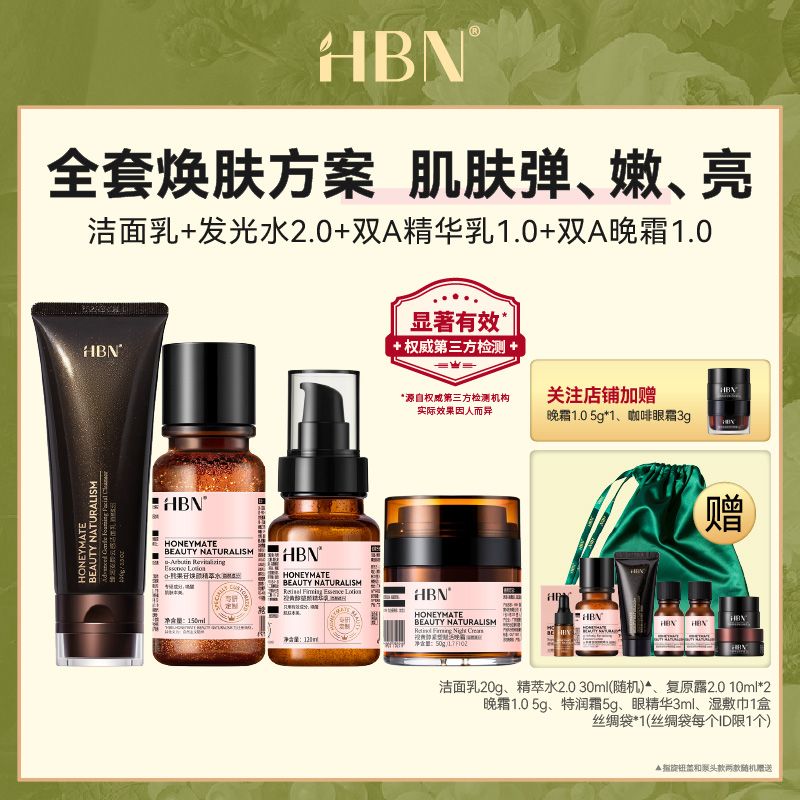 2023年HBN双A醇水乳套装晚霜早C晚A熊果苷提亮紧致抗皱护肤品组合