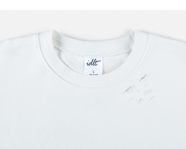 高品质 【廓形】卫衣落肩宽松CityBoy水洗破洞蝙蝠袖 男ins