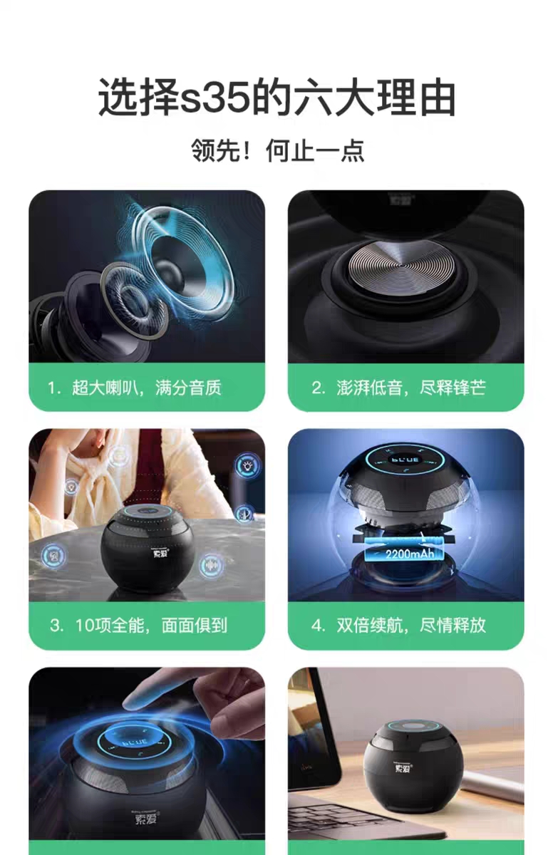 外观美观设备,优良音质非常高,轻便音量大续航非常久。售后服务非常到位。整体风格华丽 价格实惠