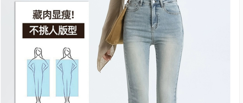 微喇裤,高腰,棉弹牛仔布,多口袋