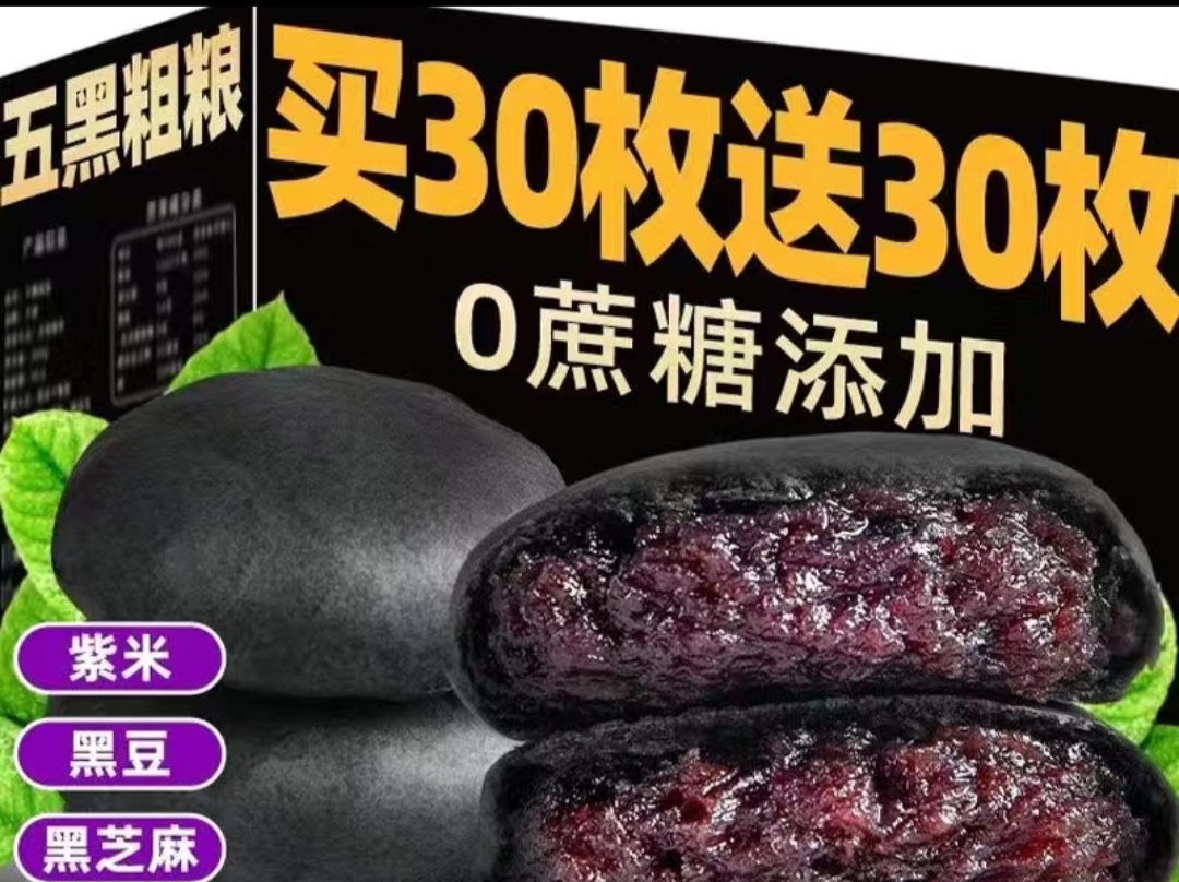无蔗糖五黑桑葚紫米饼干饱腹低代餐解馋零食卡脂粗粮