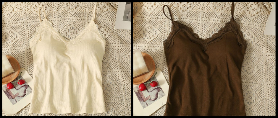 纯欲风蕾丝V领美背小吊带背心带胸垫辣妹性感内搭外穿抹胸上衣女 黑色 M