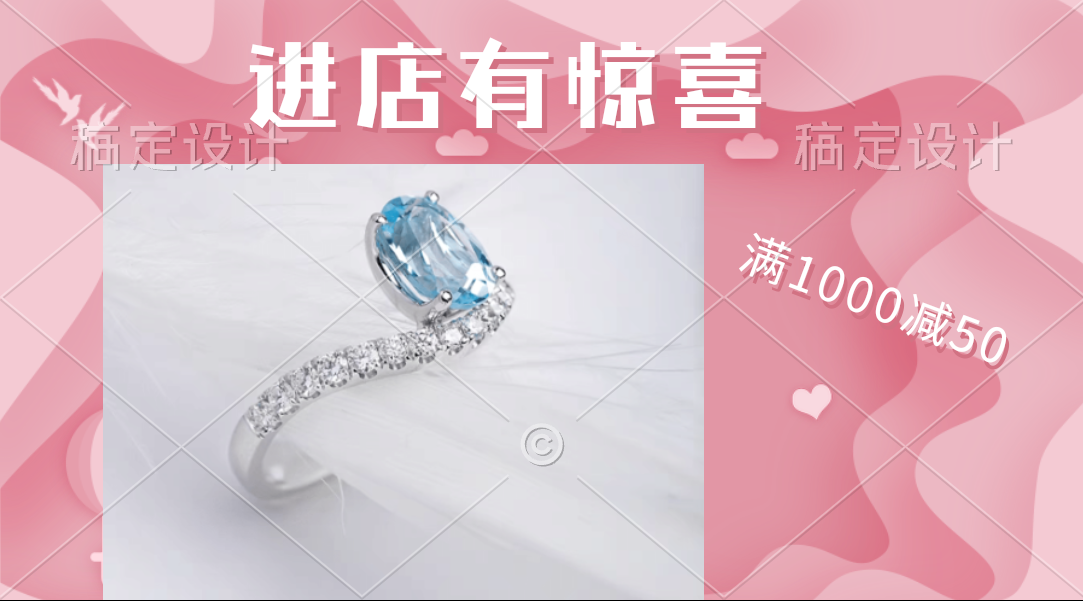 经典海蓝宝 戒臂排钻 波浪曲线 主石显大 不挑年龄皮肤