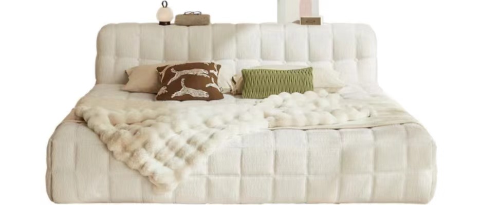 不用买床垫软床布艺床面包床法式双人贴地床