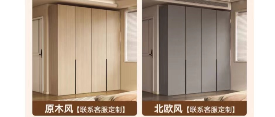定制一门到顶大衣柜家用主卧室现代简约实木欧松板奶油风白色衣橱