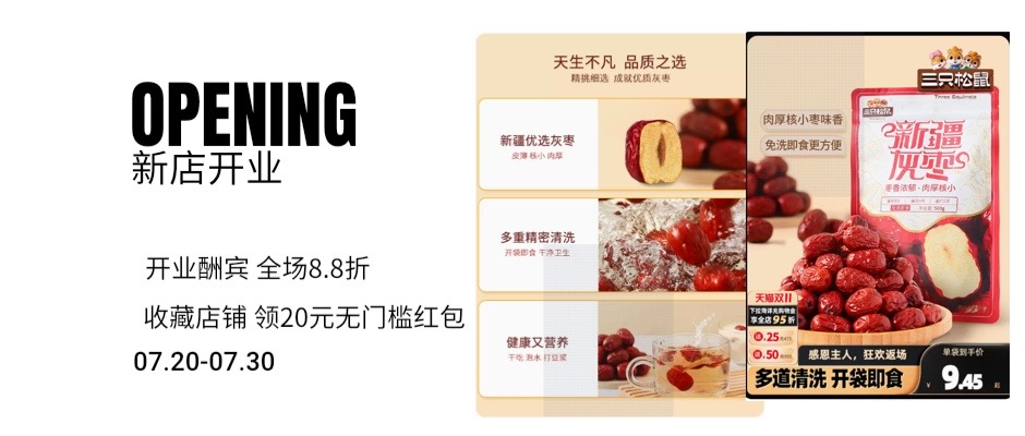 【三只松鼠_新疆灰枣500g】免洗红枣零食大枣干货枣子脆枣奶枣
