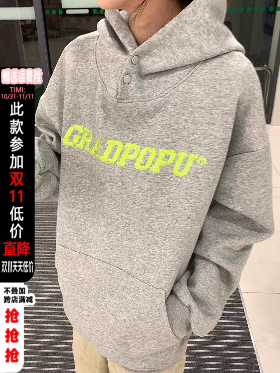 原创小众设计美式复古加厚重磅oversize灰色卫衣女秋冬款连帽外套