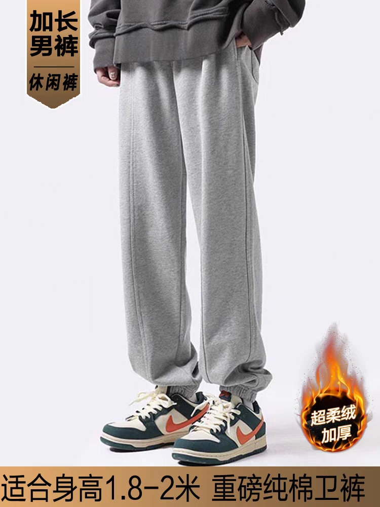190高个子加长版卫裤重磅加绒加厚休闲运动裤子百搭纯色束脚男裤