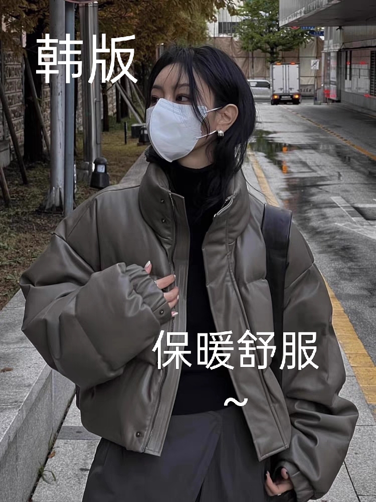 羽绒棉服棉衣女2023年新款冬季小个子面包服短款PU皮加厚外套棉袄