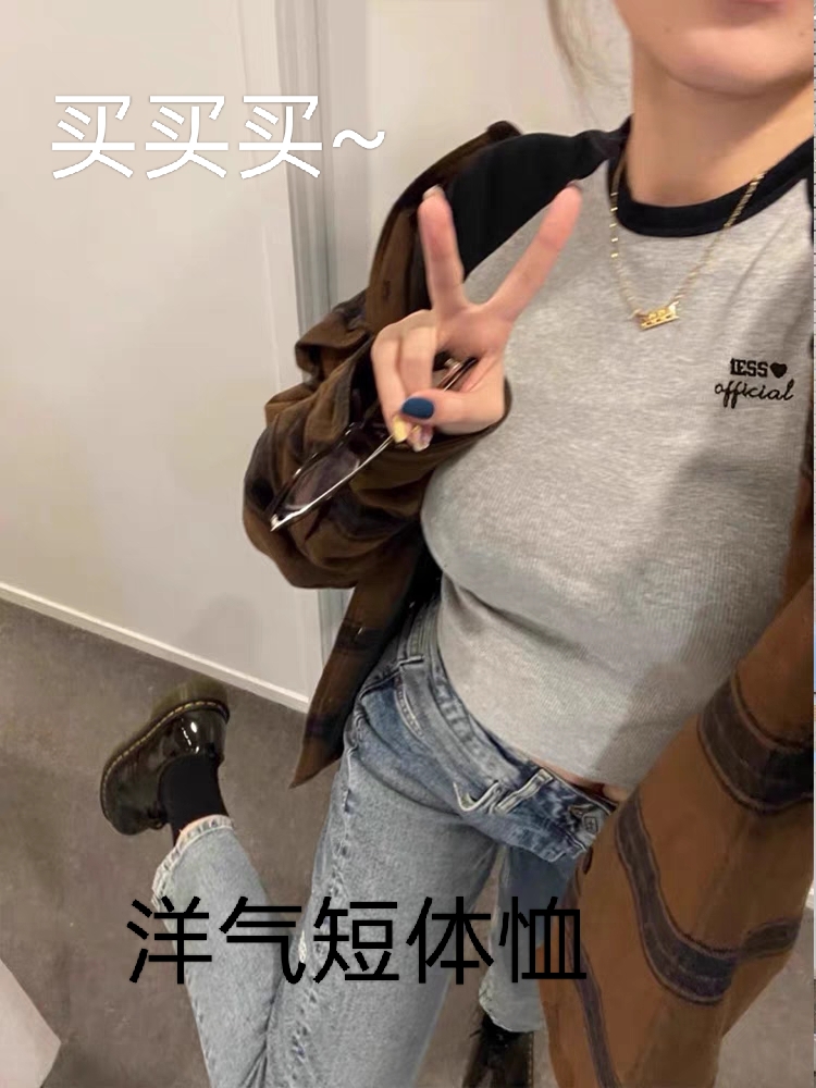 纯棉长袖T恤女秋冬新款辣妹纯欲风打底衫设计感磨毛加厚内搭上衣