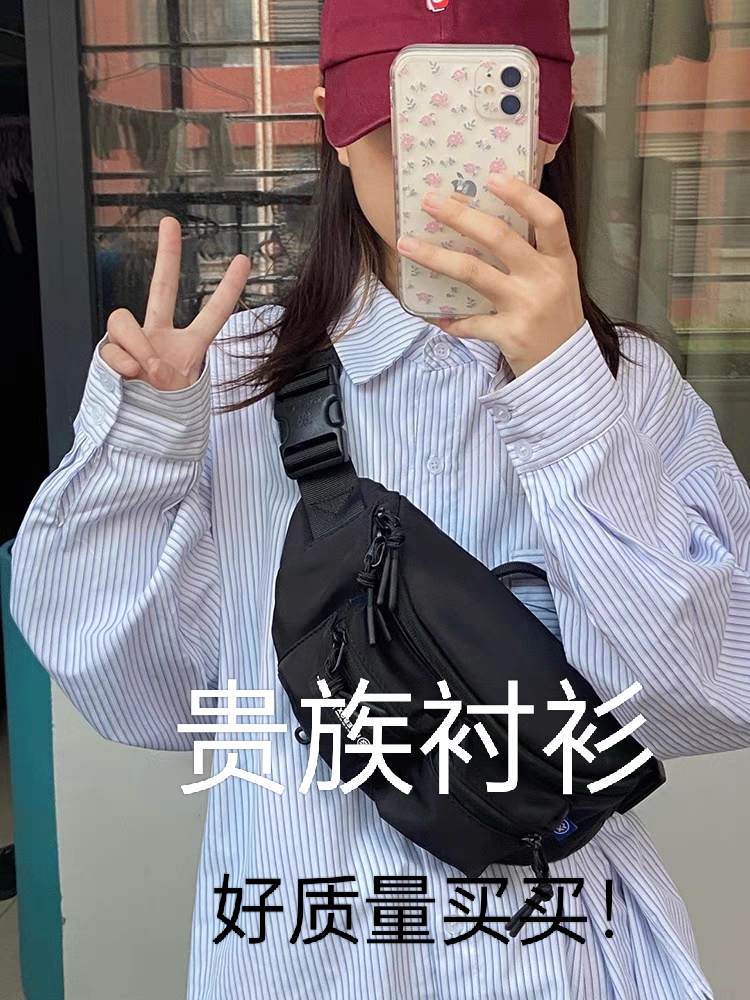 秋季新款上衣胖mm衬衣慵懒风外套设计感小众蓝色条纹女士衬衫内搭