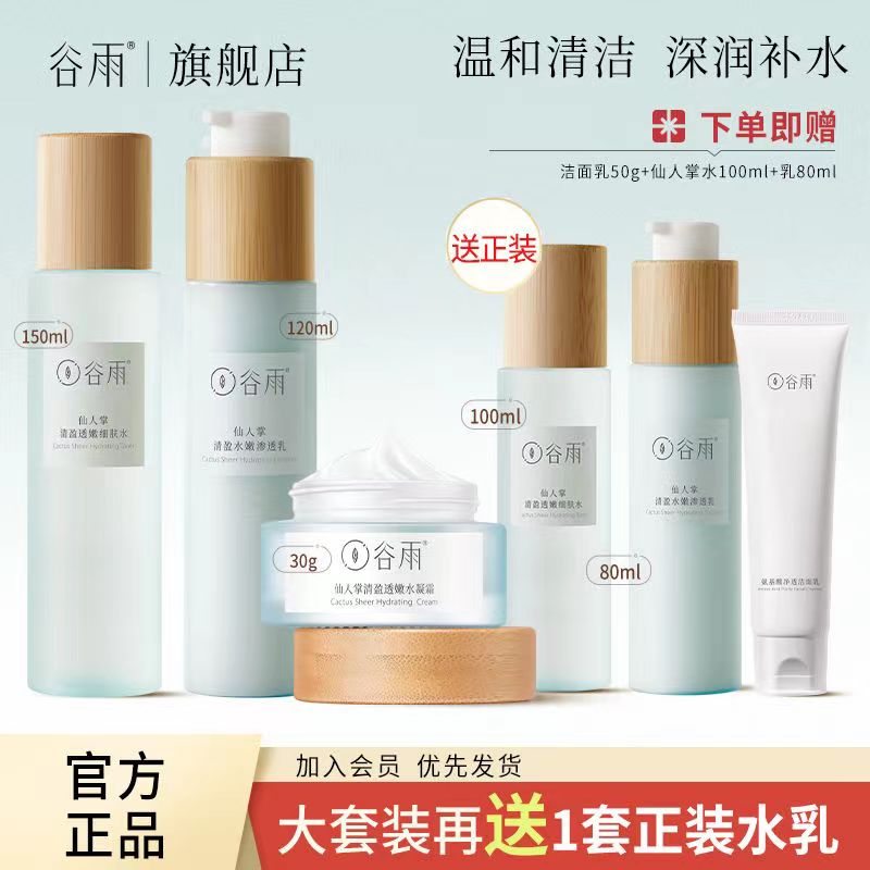 谷雨仙人掌水乳套装面霜洗面奶面部护肤补水保湿干油皮清爽学生党
