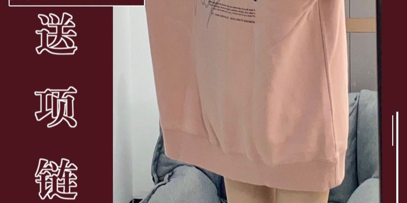 粉色圆领卫衣女秋冬季新款甜美慵懒风学生宽松加绒加厚上衣外套潮