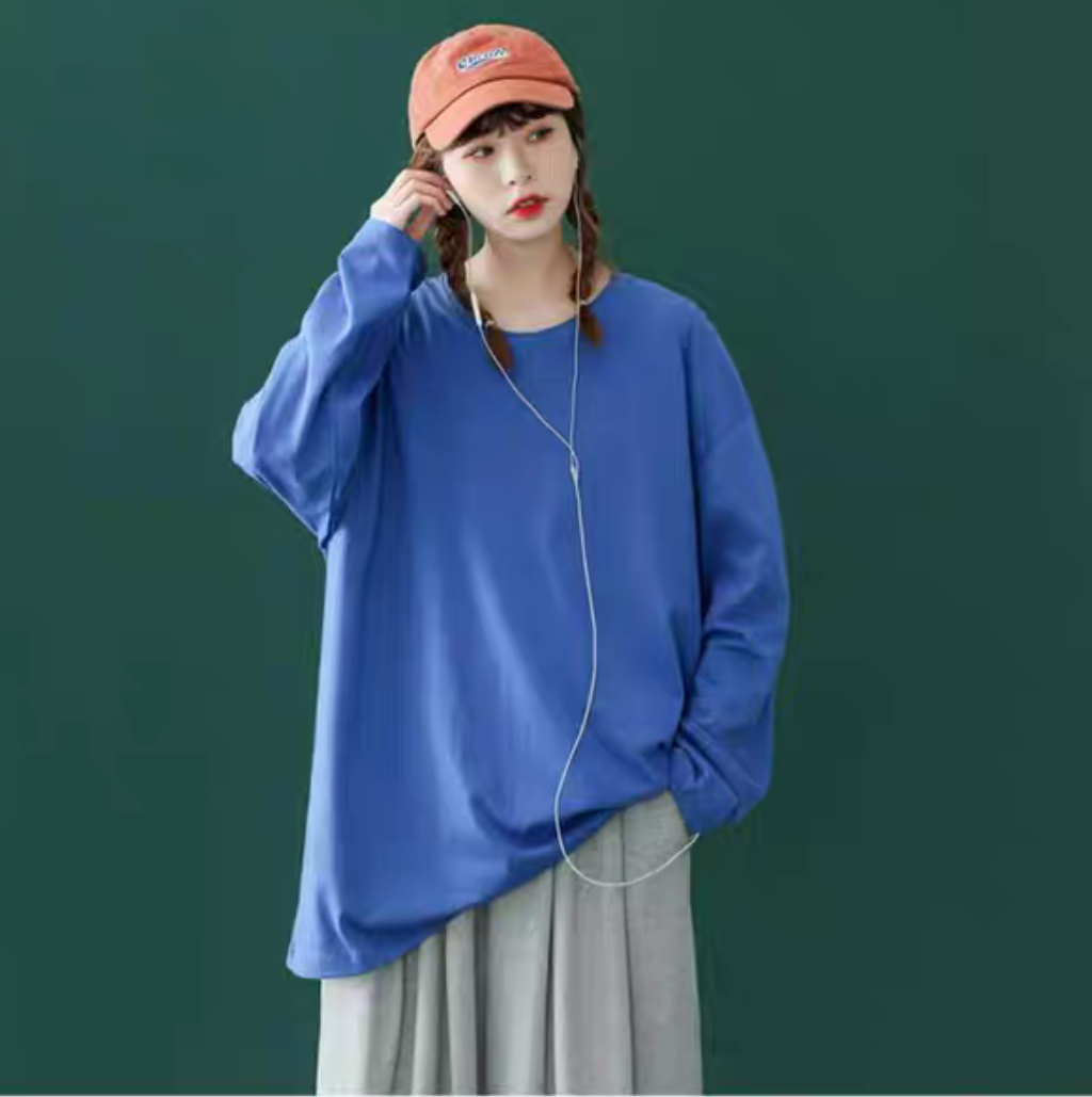 柏宜斯纯棉长袖t恤女2023新款秋冬季宽松大码内搭卫衣打底衫小个子