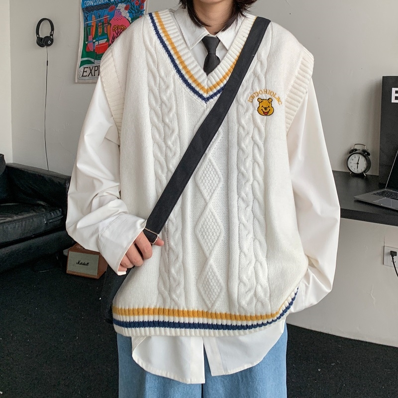 柏宜斯V领马甲针织衫女2023春秋季新款外穿坎肩背心内搭学院风毛衣秋冬